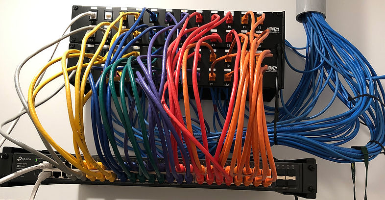 Whole home 48 port wired network used to power 12 security cameras as well as other security and smart home devices. Hard wired networks are superior to wifi networks in terms of speed, security, and other critical areas.